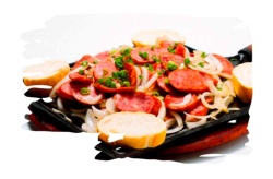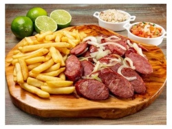 CALABRESA FATIADA, 300G. DE BATATA, CEBOLA, FAROFA TEMPERADA E VINAGRETE.