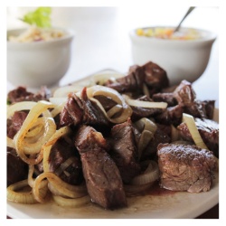 250G. CARNE BOVINA, CEBOLA, FAROFA TEMPERADA E VINAGRETE.