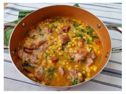 MUNGUNZÁ COM INGREDIENTES DE CARNE BOVINA, BUCHO, MOCOTÓ E TRIPA FRITA.
